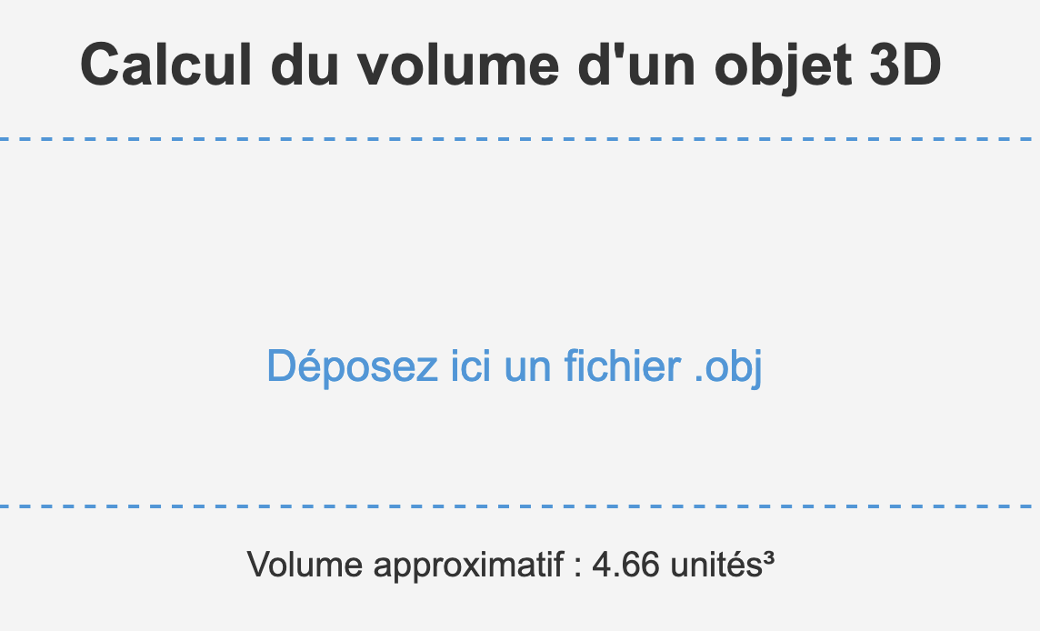 Site web permettant de déposer un fichier .obj afin d'obtenir son volume